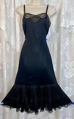 Vtg 36 Tall FANCY GOTH ROGERS BLACK NYLON Dress SLIP Pleated...
