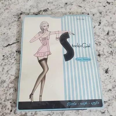 Beautiful girl in black stockings showing her perfect natural...