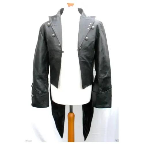 Men Steampunk Black Leather Dress | Gothic Tailcoat
