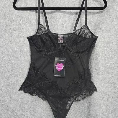 Music Legs Lingerie Women OS Black Flower Lace Back Mesh Teddy...