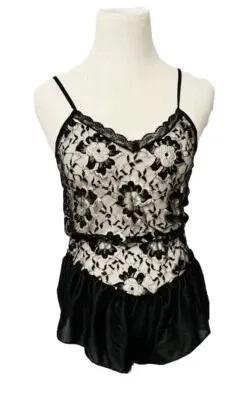 Vintage Victoria's Secret Gold Label Black Lace Mesh Teddy...