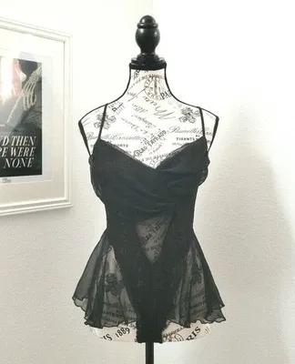 Vintage 90s Black Floral Ruffle Lace Sheer Lingerie Teddy High...