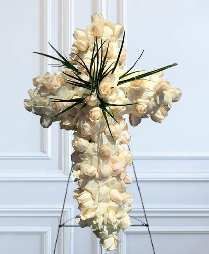 Cruz Funeraria Rosas Blancas - Floristería Tanatorio Barcelona