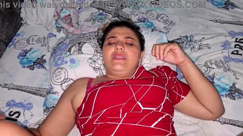 Busty Latina gal seduced blonde stepmom behind sleeping dad...