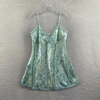 Y2K Vintage Slip Dress Medium Large Mint Blue Floral Satin Lace...