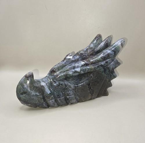 Beautiful Dragon Skull Green/Blue Moss Agate Large 1lb 15oz