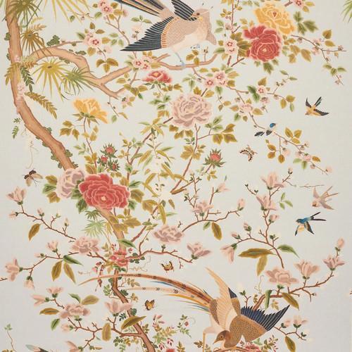 TREE OF LIFE ROBIN BIRDS BLUE JAY FLORAL FABRIC 10 YARDS AQUA...