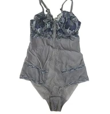 Vintage La Perla Lingerie One Piece Bodysuit Blue Gray Lace...