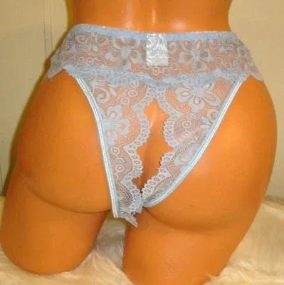 Light Blue Lace Crotchless Panties Lingerie, 2XL Adult Gift...