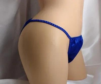 Royal Blue Satin String Bikini panties, classic style for women...