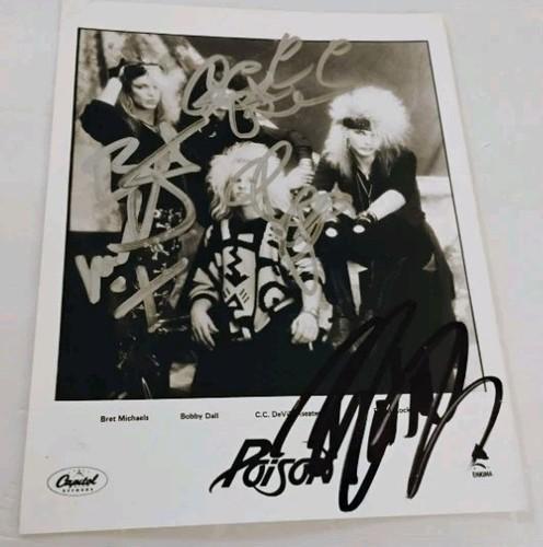 POISON BRET MICHAELS RIKKI CC BOBBY SIGNED AUTOGRAPHED BAND...