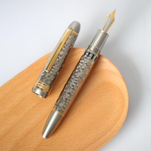 MAJOHN P136 Piston Titanium Alloy Fountain Pen Steel/BOCK 18K...