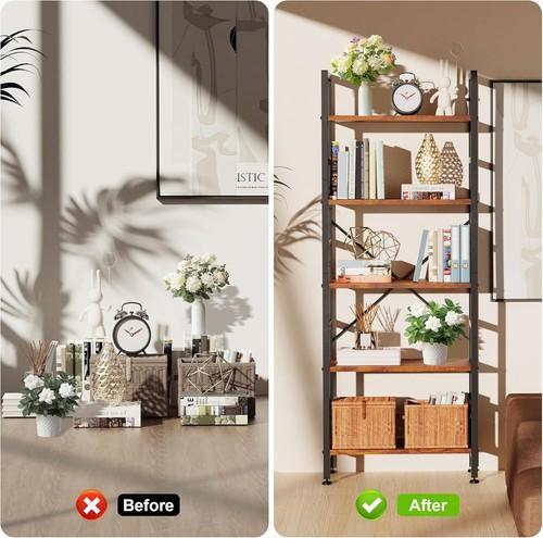 5-Tier Bookshelf L-Shaped Corner Bookcase with Metal Frame Wood...