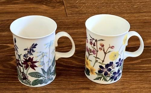 Pair Dunoon Botanica Fine English Bone China Mugs Decorated...