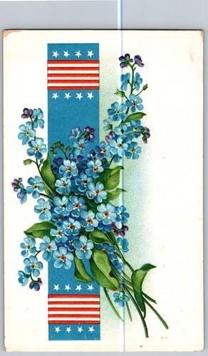 Antique Postcard Forget-me-not Patriotic Bouquet Whitehall, IL...