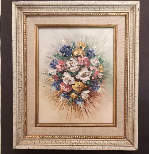 Vtg Still Life Oil Painting Floral Bouquet Artist Henry M...