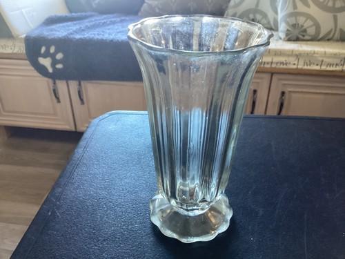 Heavy 8" Clear Glass Ribbed / Scalloped Footed Bouquet Vase