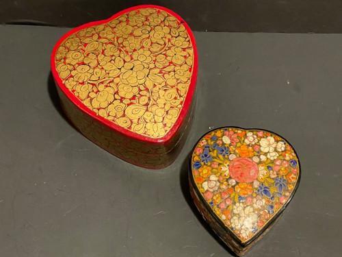 2 Vintage Paper Mache Lidded Lacquer Nesting Heart Boxes...