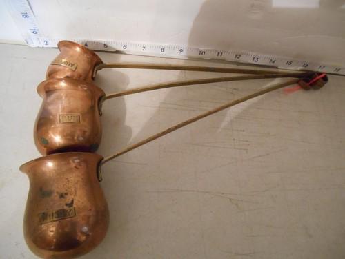 Set of 3 VTG Copper Dippers Whisky , Rum , Brandy 3--21/2--2...
