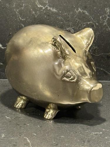 Vintage Solid Polished Brass Piggy Bank- Heavy Brass Hog Coin...