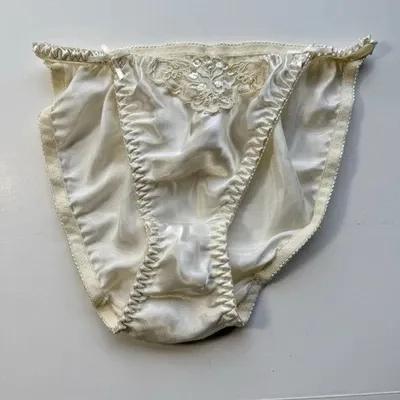 Vtg String Bikini Panties Second Skin Satin Bridal Hi Cut Shiny...
