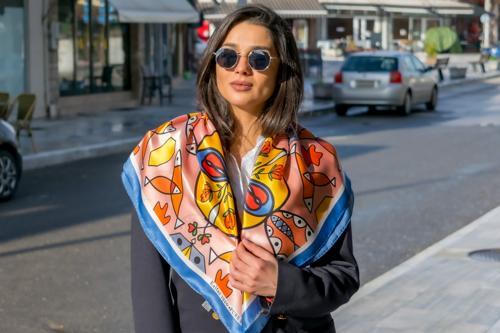 Bright colorful square scarf in orange - Ancientgreekscarves.com