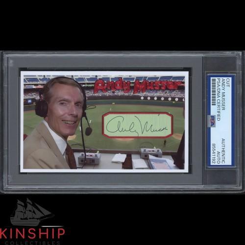 Broadcaster Andy Musser signed Cut 3x5 Custom Card PSA DNA Slab...