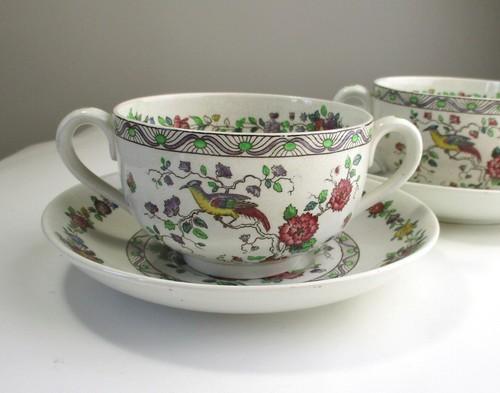 Spode Copeland Chelsea Bird #6522 (2) broth cups & saucers...