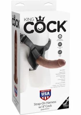 King Cock Strap-On Harness with 8" Dildo Brown - Realistic Dong...