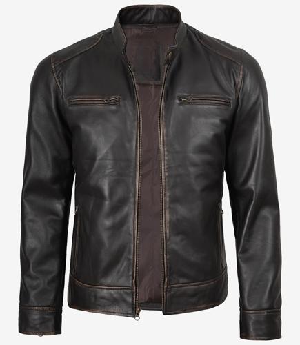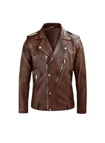 Mens Distressed Brown Motorcycle Leather Jacket