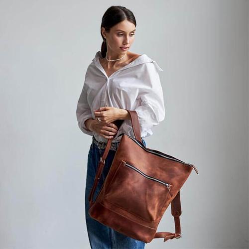 Ashley Brown Roll-Top Leather Backpack – Stylish & Spacious