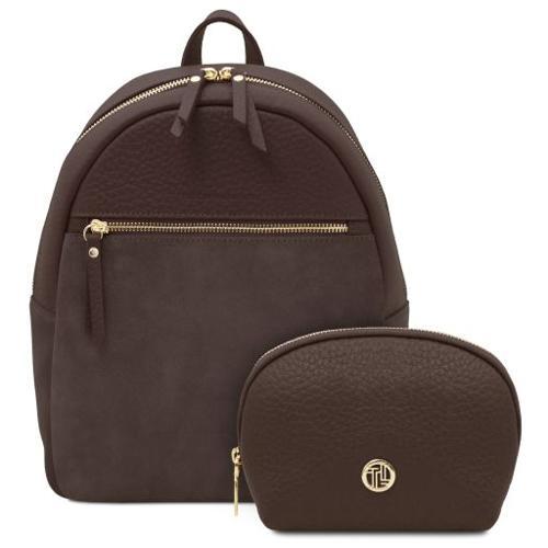 Itaca Leather Backpack and Soft Leather Toiletry Case Dark...