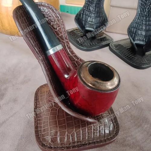 Brown Crocodile Leather Pipe Stand Rack Holder Smoking Pipe...