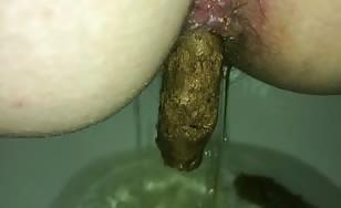 Naked Bitch Bends and Shits Long Brown Turd XXX Porn Video