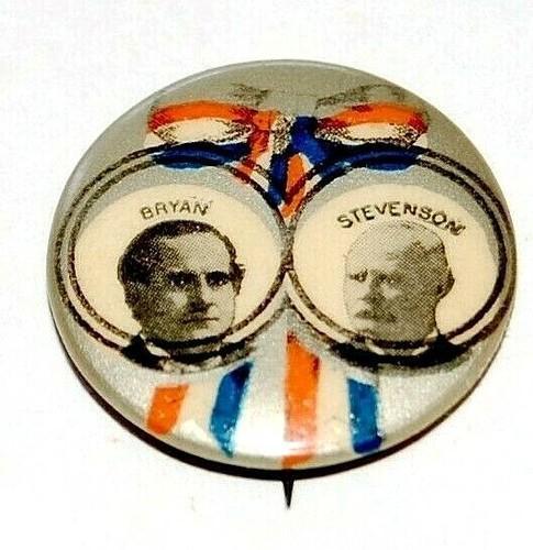 1900 WILLIAM JENNINGS BRYAN ADLAI STEVENSON campaign pinback...