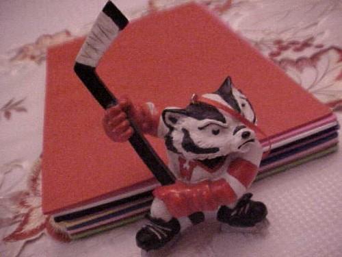 ORNAMENT Ice HOCKEY Wisconsin Bucky Badger Figurine Vintage UW...