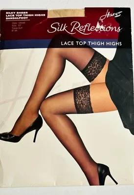 NOS VTG HANES SILK REFLECTIONS SHEER BUFF PANTYHOSE LACE TOP...