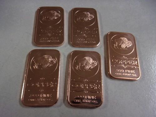Copper Bars * 1 Ounce Each * .999 Bullion * Five Piece Buffalo...