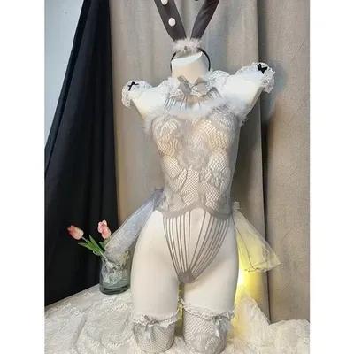 Sexy Anime Bunny Cosplay Mesh Fishnet Lingerie Costume Set – S...
