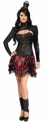 Steampunk Dress Ladies Sexy Blk & Burg 4 Pc Dress Spats & Hat...