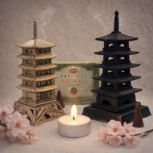 Vintage Japanese Pagoda Incense Burners Brass & Cast Iron...