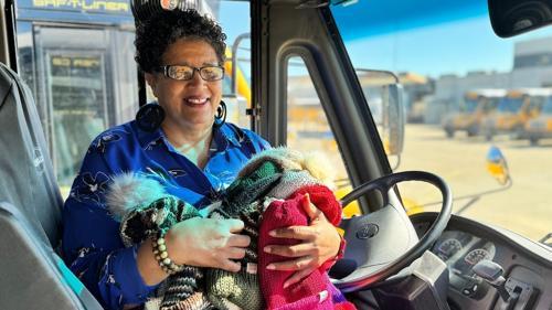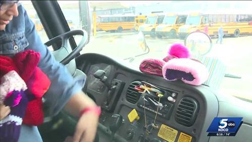 Oklahoma bus driver knits hats to keep students warm