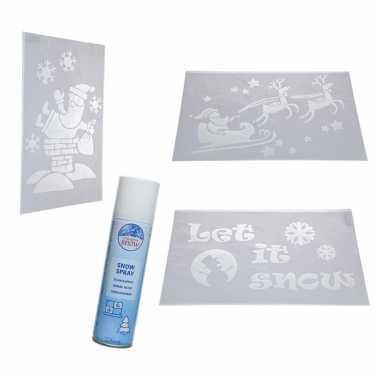 4x kerst decoratie raamsjablonen met busje spuitsneeuw...