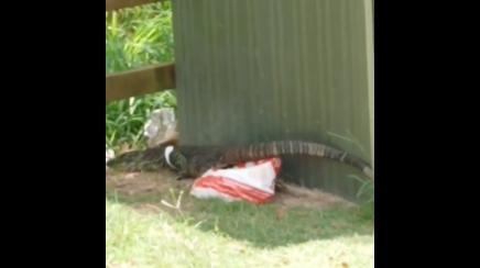 Invasione di rifiuti: l'iguana resta intrappolata nella busta...