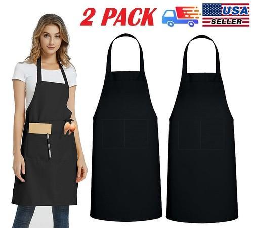 2 Pack Waterproof Chef Apron Black Catering Cooking Kitchen...