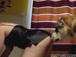 De vestidinho curto ela deu muito pro cachorro - Sexo Zoofilia