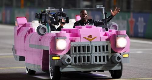 Terry Crews chauffeurs F1 podium in LEGO Cadillac at Las Vegas...
