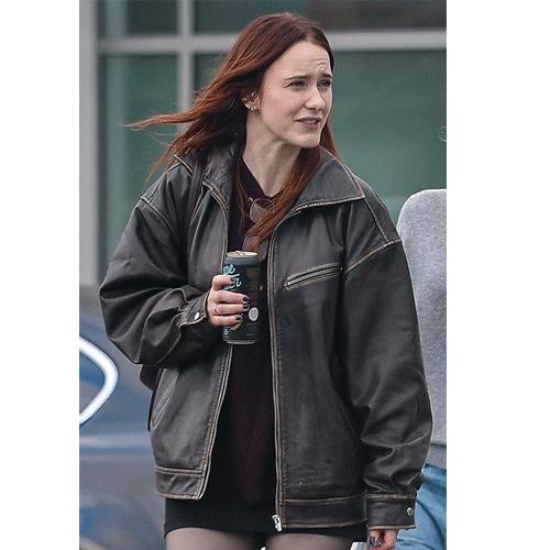 Women's Rachel Brosnahan Cafe Racer Distressed Black Leather...