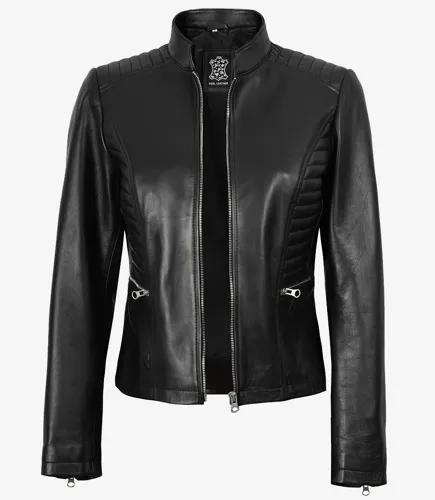 Women's Cafe Racer Black Leather Jacket | Black Leather Jacket
