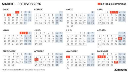 Así es el calendario laboral de 2026 en la Comunidad y todos...